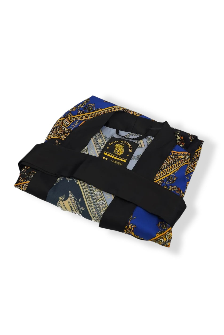 Inspired by Versace with a SavTac edge, the Savage Kimono Robe - Medusa is your ultimate statement piece. Perfect for everything from checking the mail to unforgettable nights out, this robe is crafted from luxuriously soft silk-like Satin Atlas and Polyester. It features a removable waist tie with belt loops for a secure fit and two front pockets for convenience.